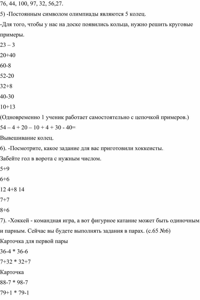 7). -Хоккей - командная игра, а вот фигурное катание может быть одиночным и парным. Сейчас вы будете выполнять задания в парах. (с.65 №6)