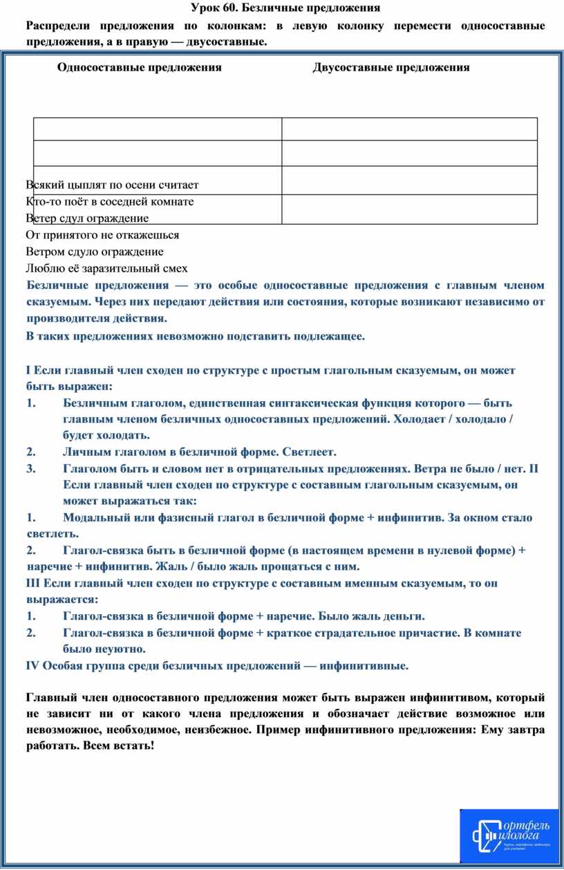 Урок 60. Безличные предложения