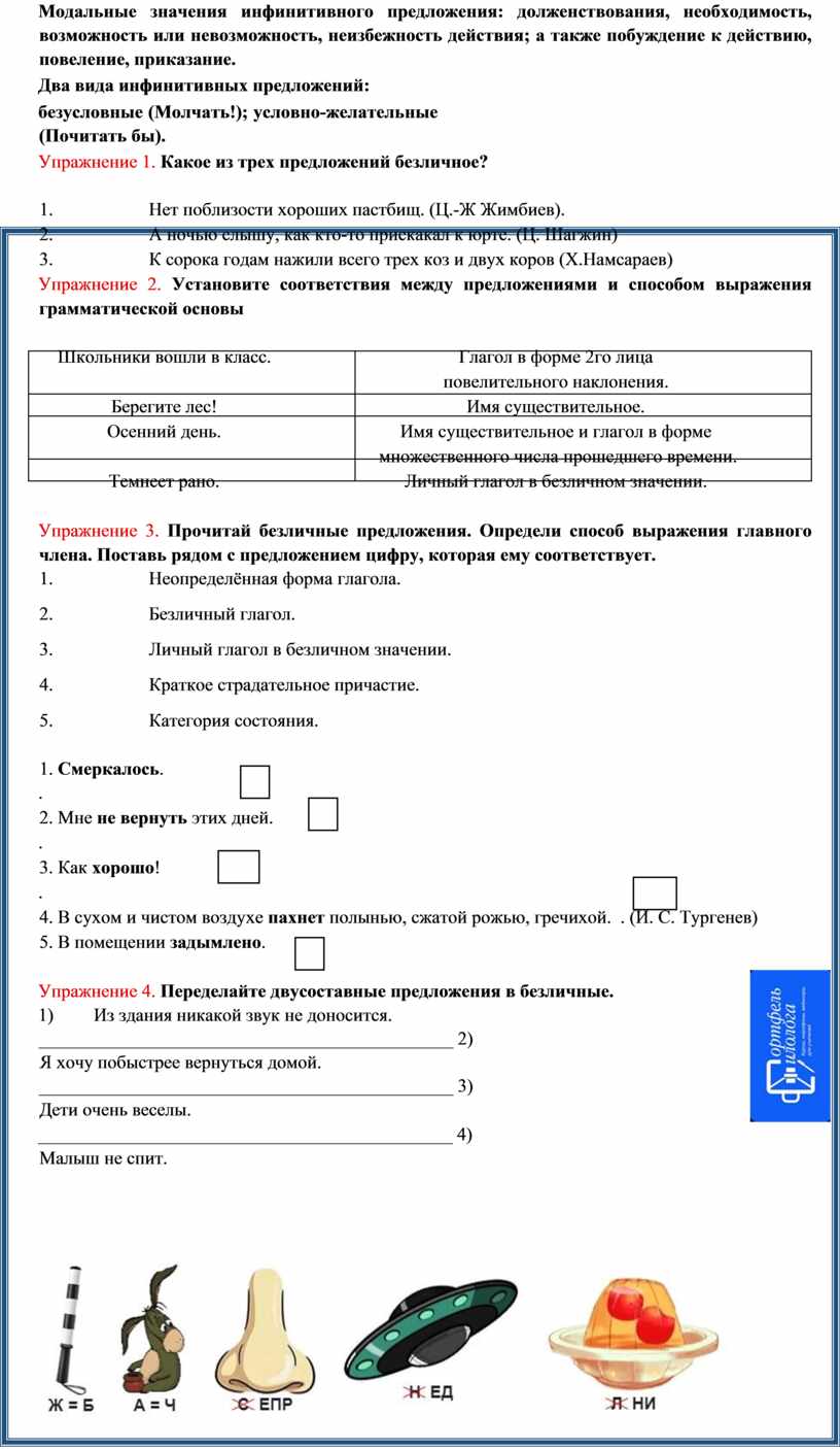 Упражнение 3. Прочитай безличные предложения. Определи способ выражения главного члена. Поставь рядом с предложением цифру, которая ему соответствует.