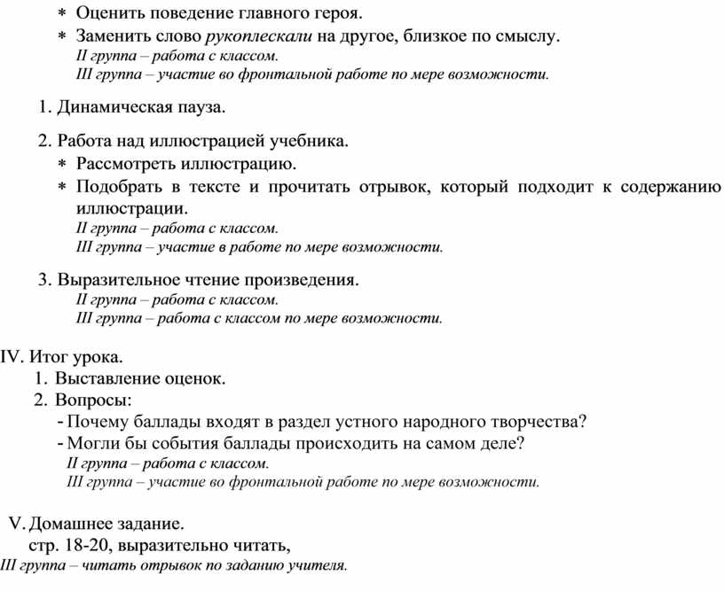 III группа – чтение отрывка по заданию учителя, участие во фронтальной работе по мере возможности.