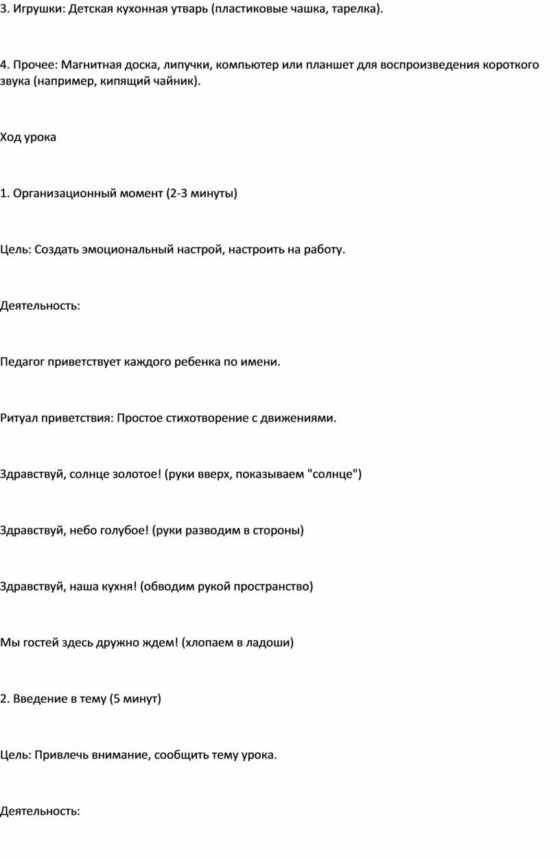 4. Прочее: Магнитная доска, липучки, компьютер или планшет для воспроизведения короткого звука (например, кипящий чайник).