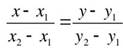 — Отлично! А теперь вспомним как выглядит уравнение прямой в общем виде? ( Ожидаемый ответ ax+by+c=0) — Верно. Как составить уравнение прямой, проходящей через две точки (x1,y1) и (x2,y2)? Ожидаемый