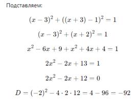 Дискриминант отрицательный → решений нет. — Поднимите руку, у кого оба задания выполнены