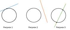 Как может быть расположена прямая относительно окружности? (Она может пересекать окружность, касаться. Может не пересекать.)
