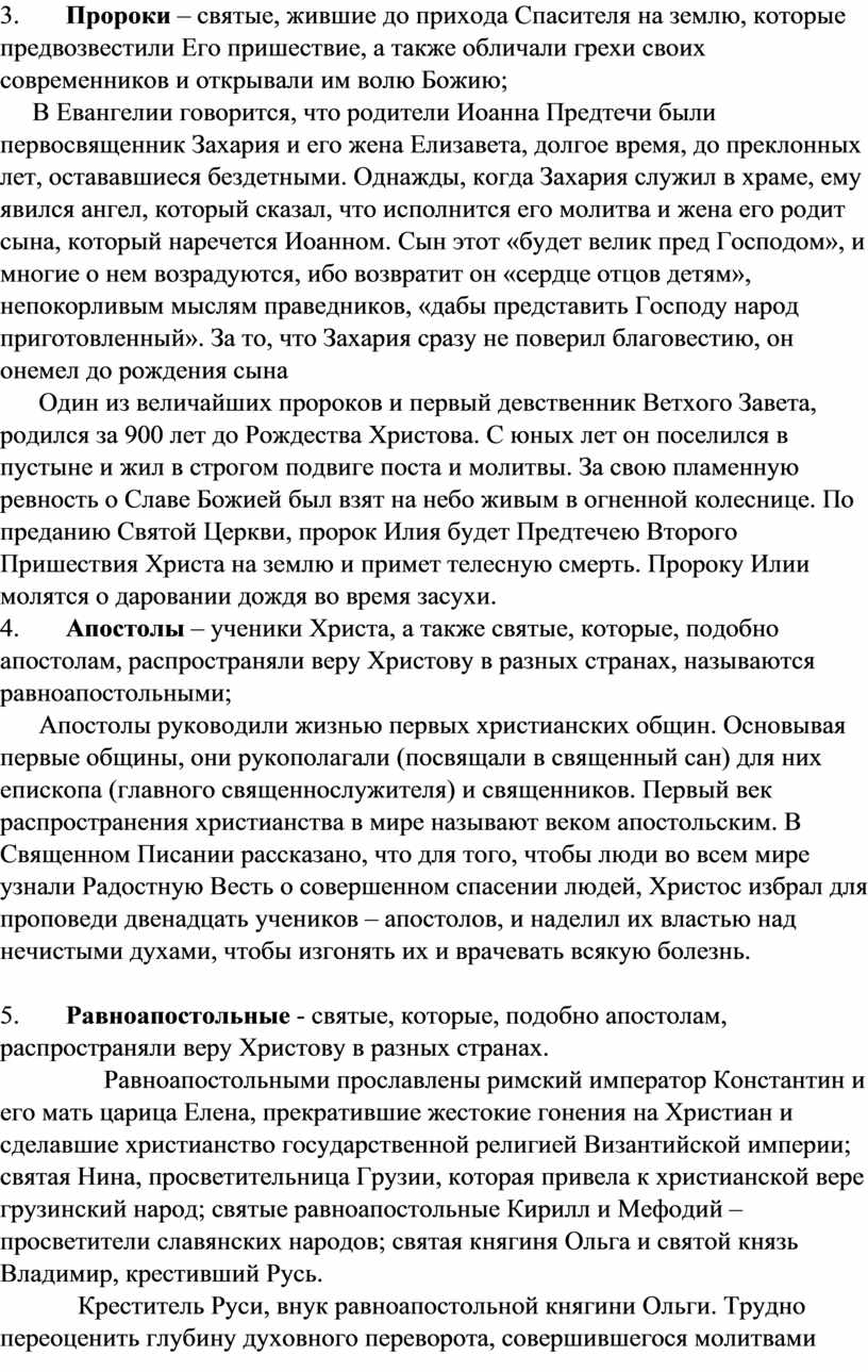 3. Пророки – святые, жившие до прихода Спасителя на землю, которые предвозвестили Его пришествие, а также обличали грехи своих современников и открывали им волю Божию;