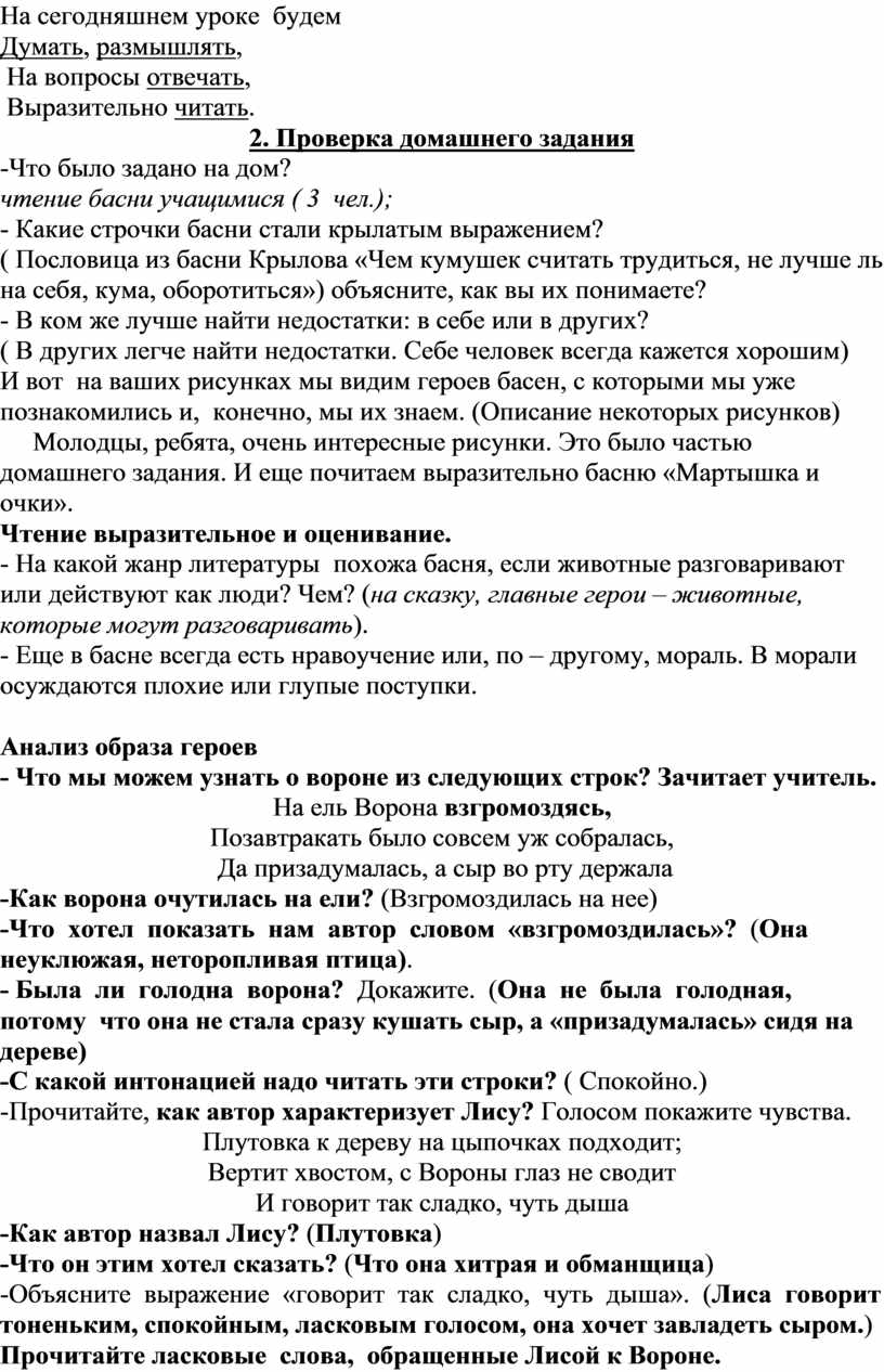 Образовательные задачи: расширить знания учащихся о жанре «басня» и о творчестве И.А. Крылова, расширить их; добиться понимания содержания басни, морали, формирование умения выражать свое отношение к прочитанному.