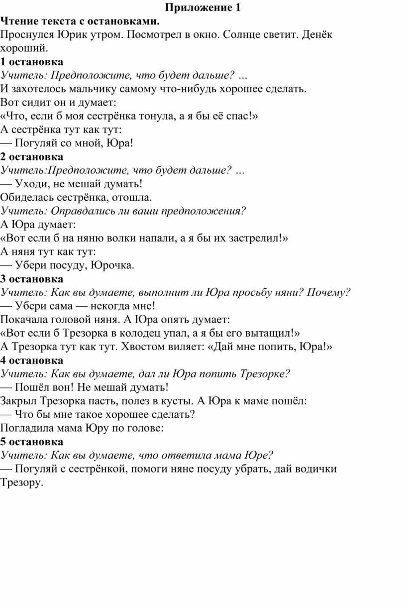 Чтение текста подготовленным учеником с остановками (Приложение 1).