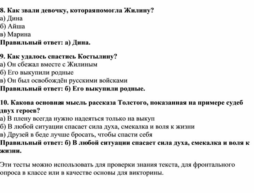 Эти тесты можно использовать для проверки знания текста, для фронтального опроса в классе или в качестве основы для викторины.
