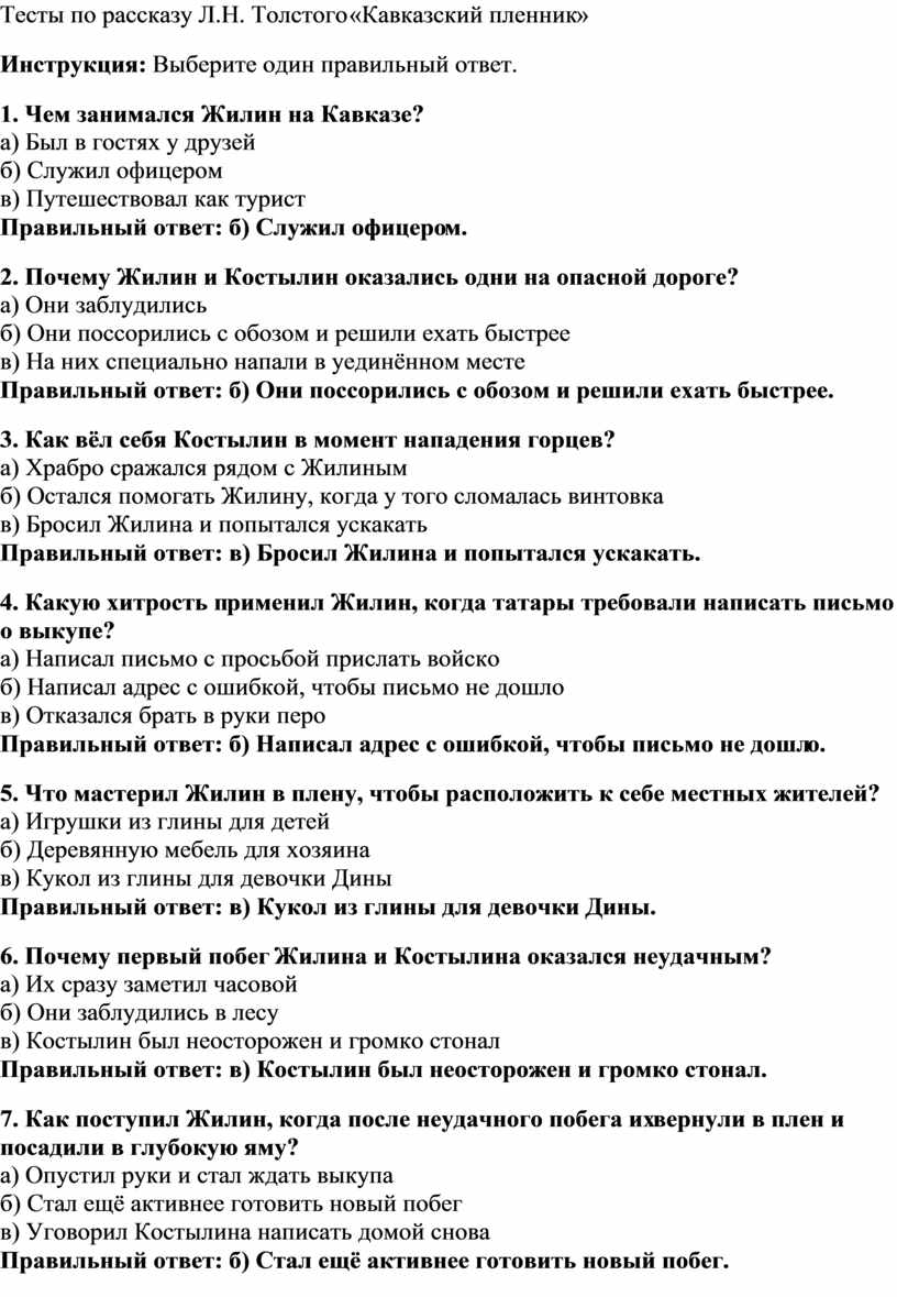 2. Текст рассказа «Кавказский пленник».