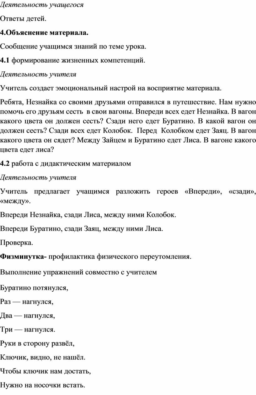 Учитель предлагает учащимся разложить героев «Впереди», «сзади», «между».