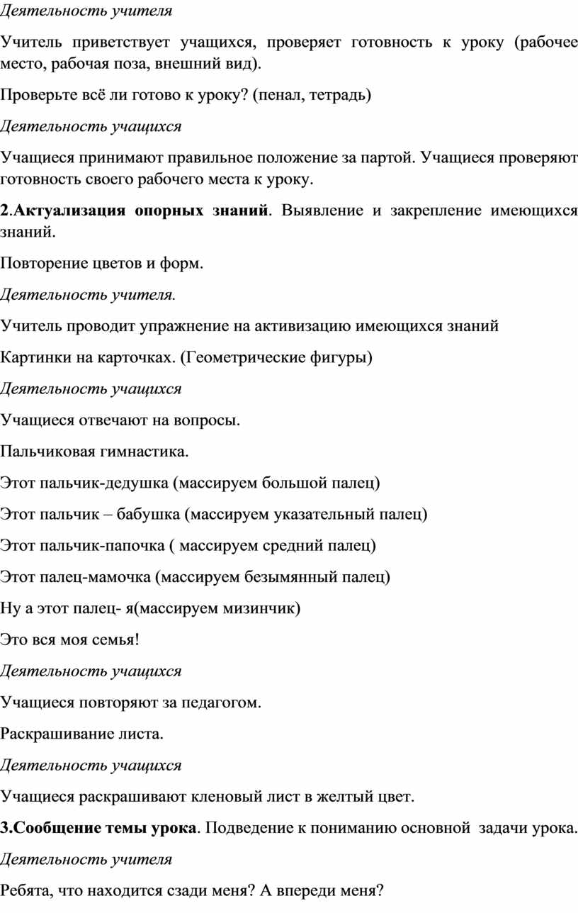 Регулятивные: соблюдать ритуалы школьного поведения, работать в общем темпе, выполнять учебные действия, ориентироваться в пространстве класса, находить свое место, ориентироваться в ходе урока (возвращаться на место после физминутки).