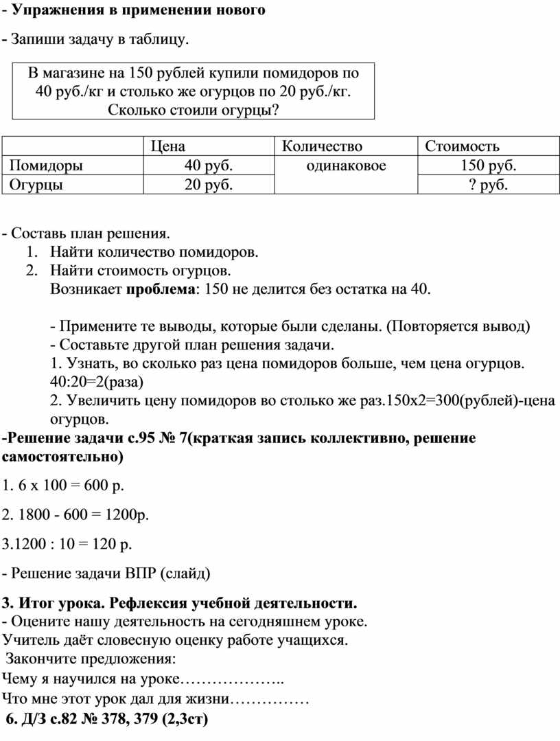 -Решение задачи с.95 № 7(краткая запись коллективно, решение самостоятельно)