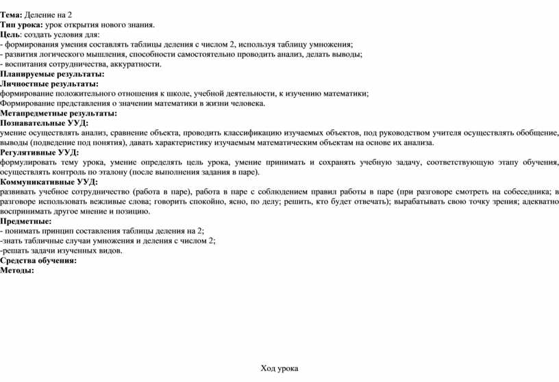- формирования умения составлять таблицы деления с числом 2, используя таблицу умножения;