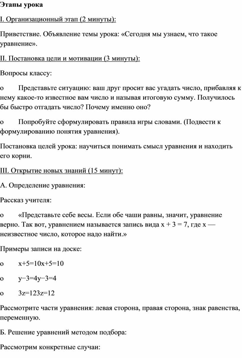 Конспект урока математики для 5-го класса на тему «Уравнения» согласно требованиям новых ФГОС