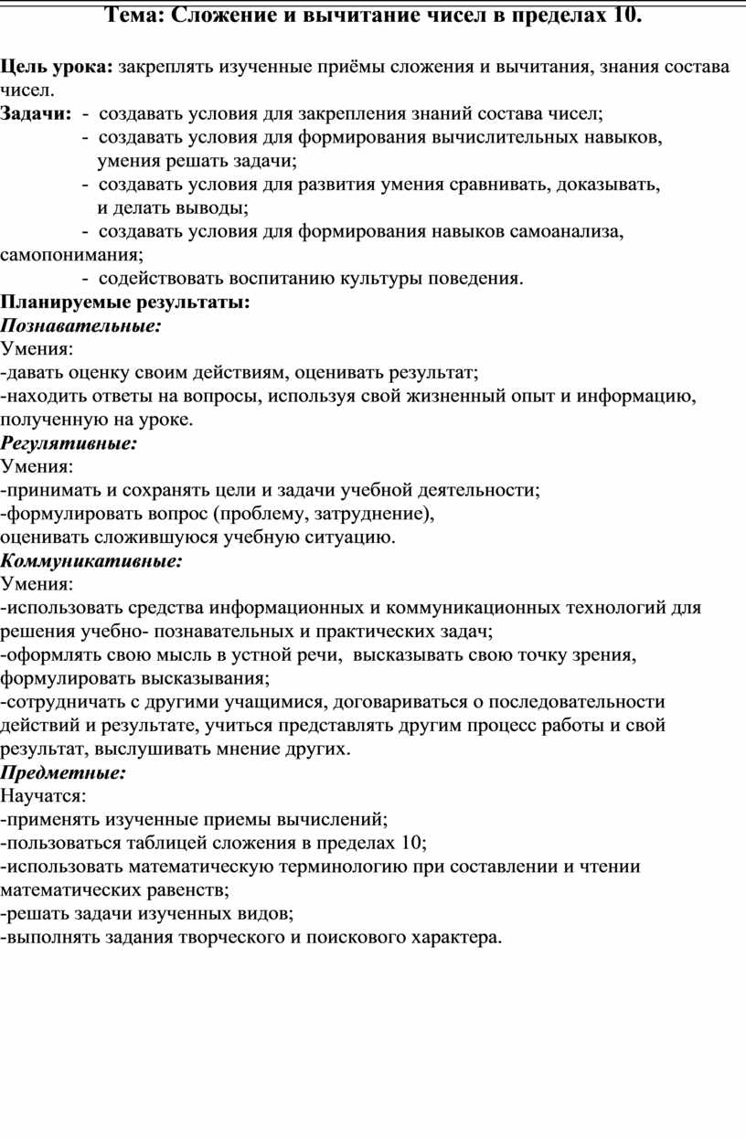 Цель урока: закреплять изученные приёмы сложения и вычитания, знания состава чисел.