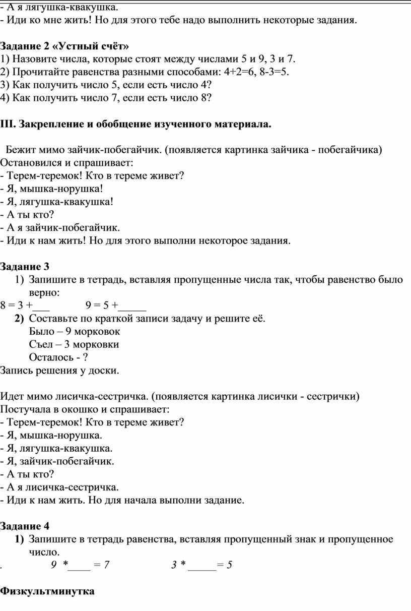 -использовать математическую терминологию при составлении и чтении математических равенств;