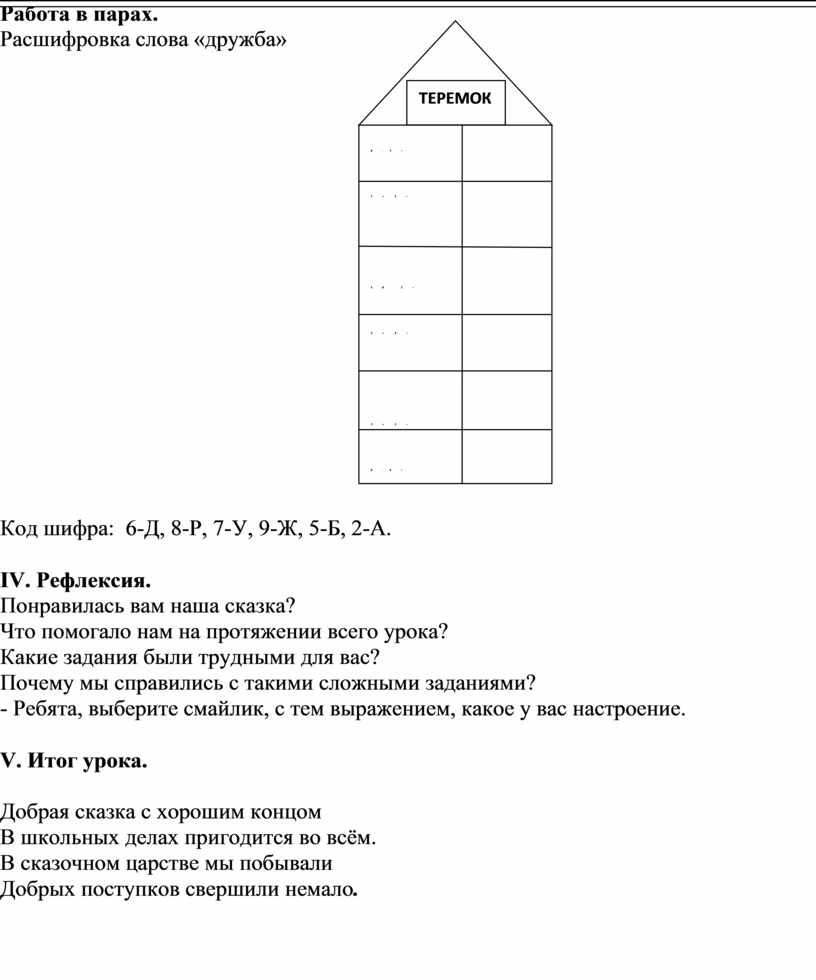 Код шифра: 6-Д, 8-Р, 7-У, 9-Ж, 5-Б, 2-А.