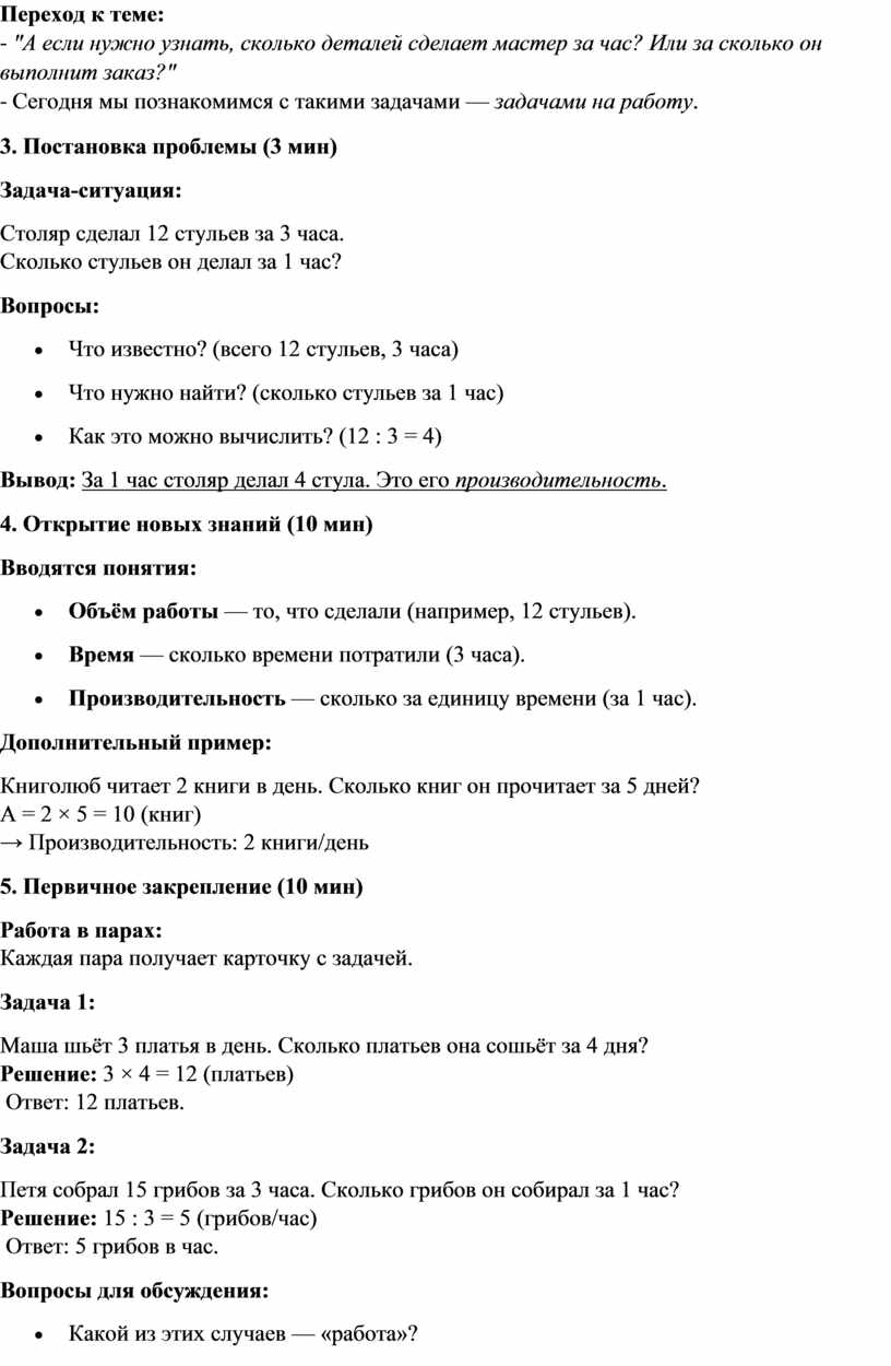 Вывод: За 1 час столяр делал 4 стула. Это его производительность.