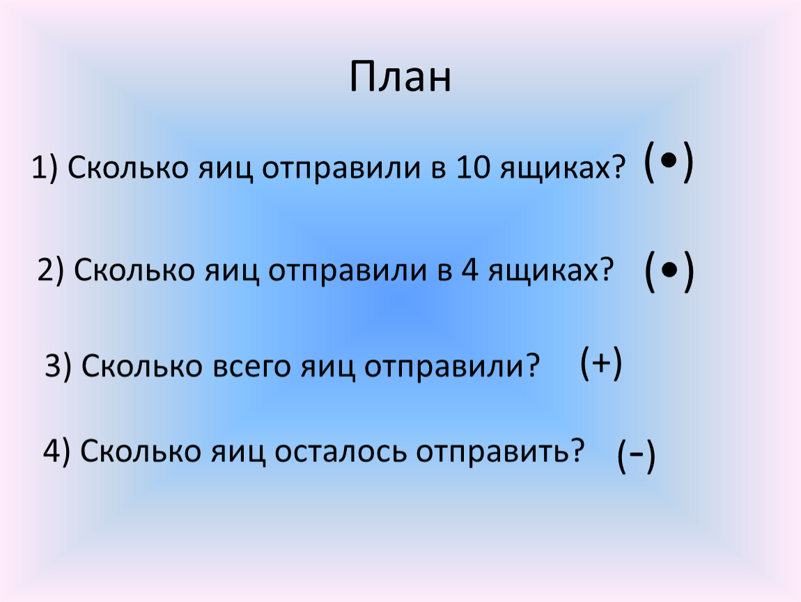 2) Сколько яиц отправили в 4 ящиках?
