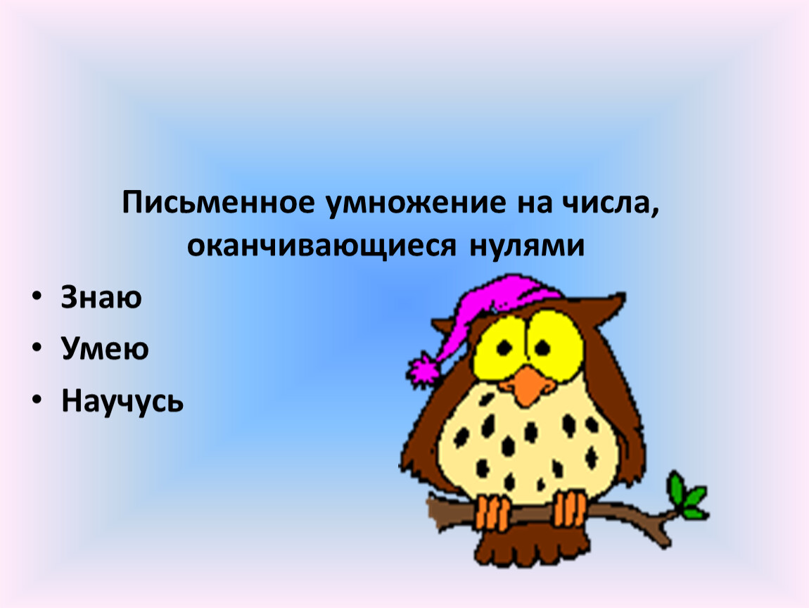 Письменное умножение на числа, оканчивающиеся нулями
