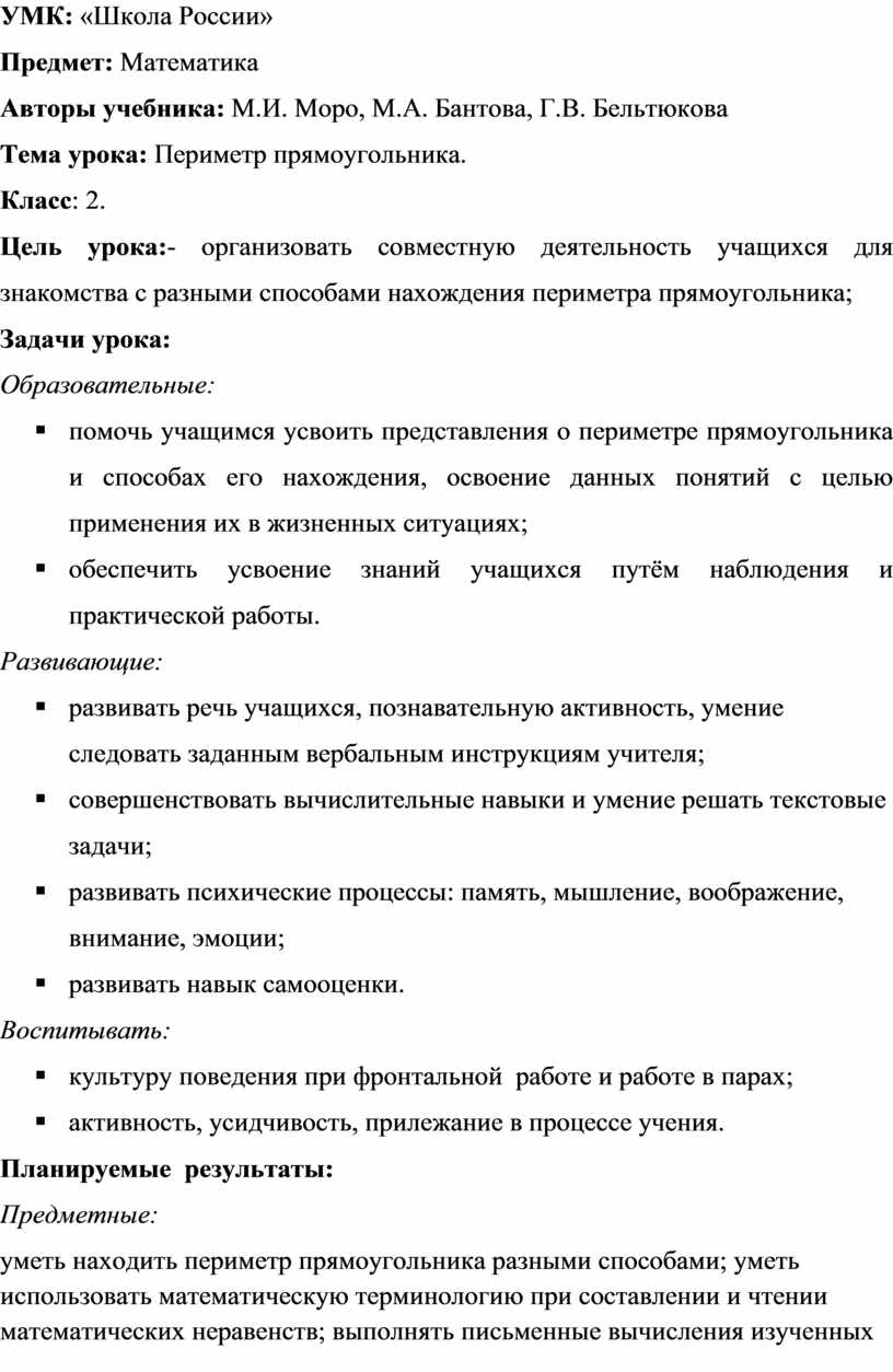 § помочь учащимся усвоить представления о периметре прямоугольника и способах его нахождения, освоение данных понятий с целью применения их в жизненных ситуациях;
