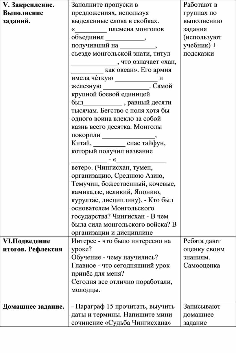 - Параграф 15 прочитать, выучить даты и термины. Напишите мини сочинение «Судьба Чингисхана» |