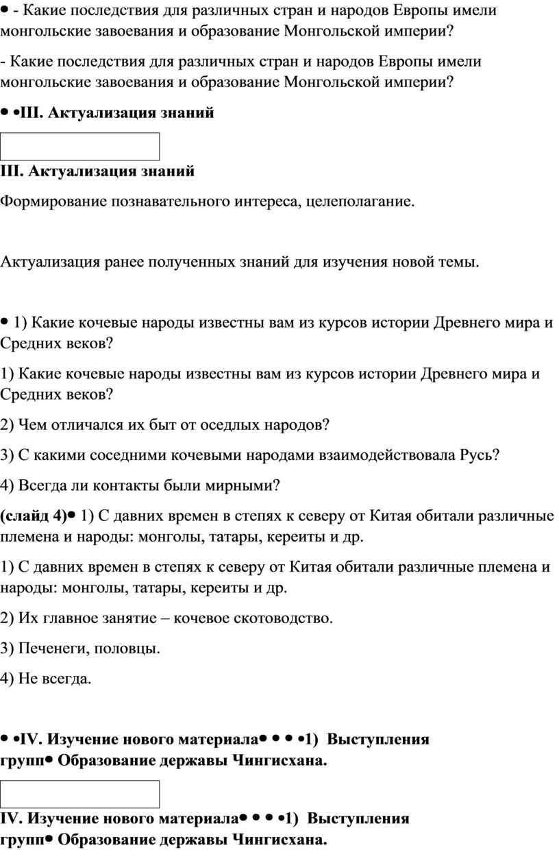 Проблемный вопрос - Какие последствия для различных стран и народов Европы имели монгольские завоевания и образование Монгольской империи? |