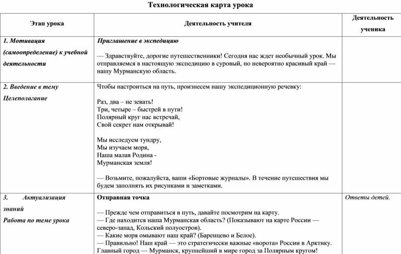 — Здравствуйте, дорогие путешественники! Сегодня нас ждет необычный урок. Мы отправляемся в настоящую экспедицию в суровый, но невероятно красивый край — нашу Мурманскую область.