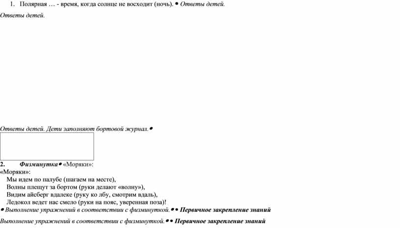 Ответы детей. Дети заполняют бортовой журнал.