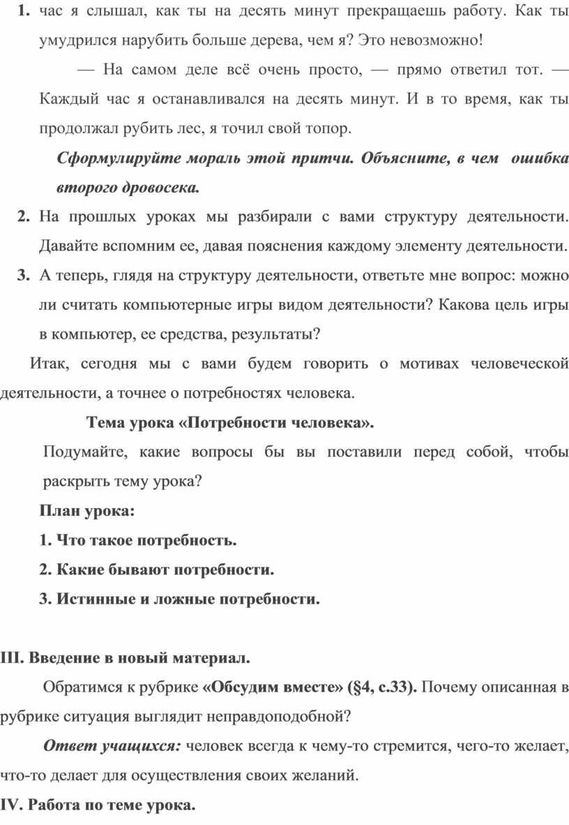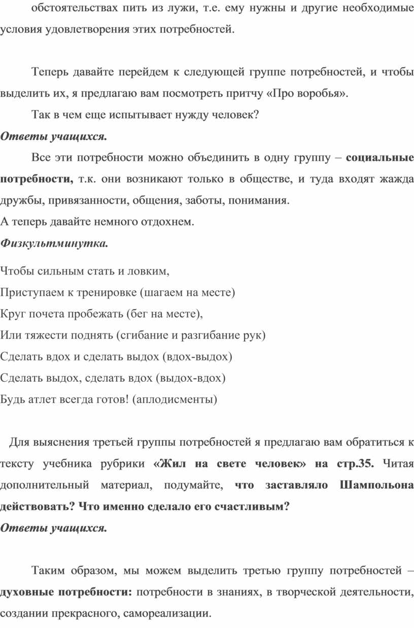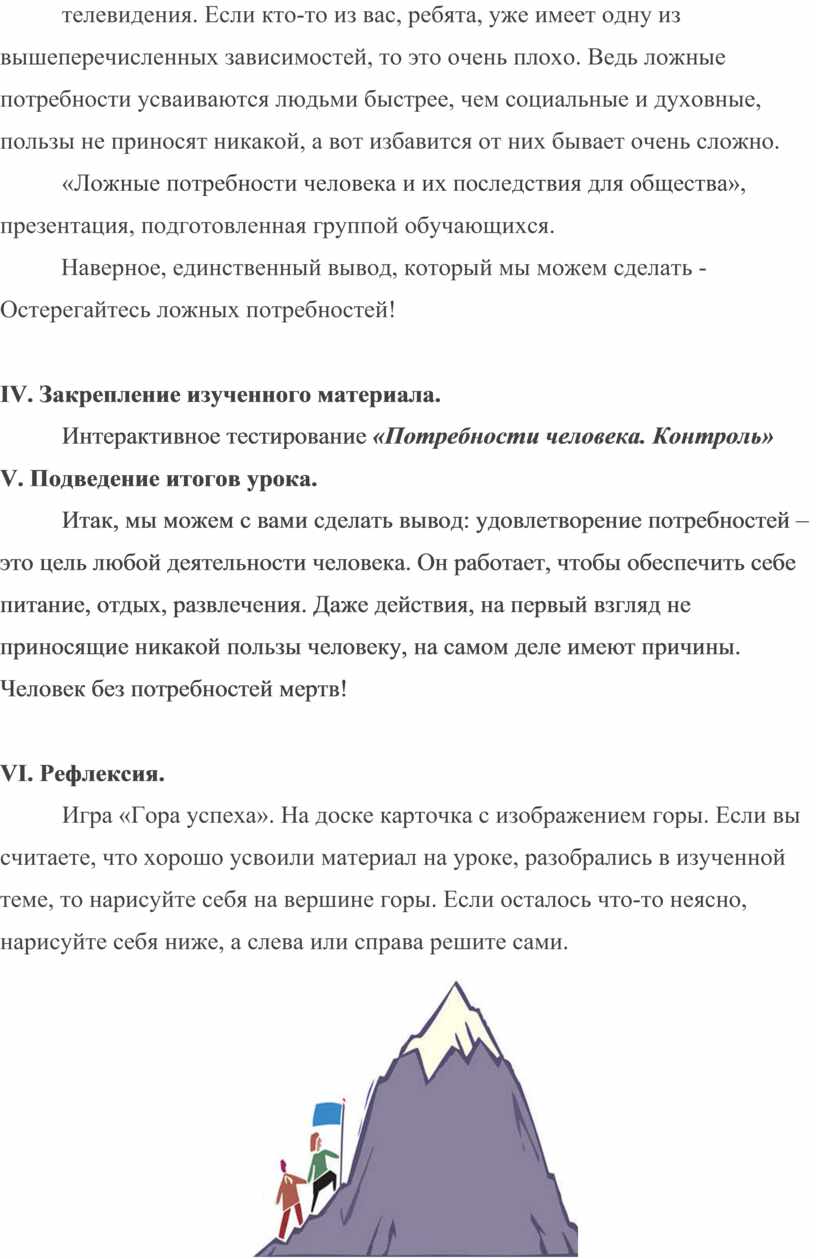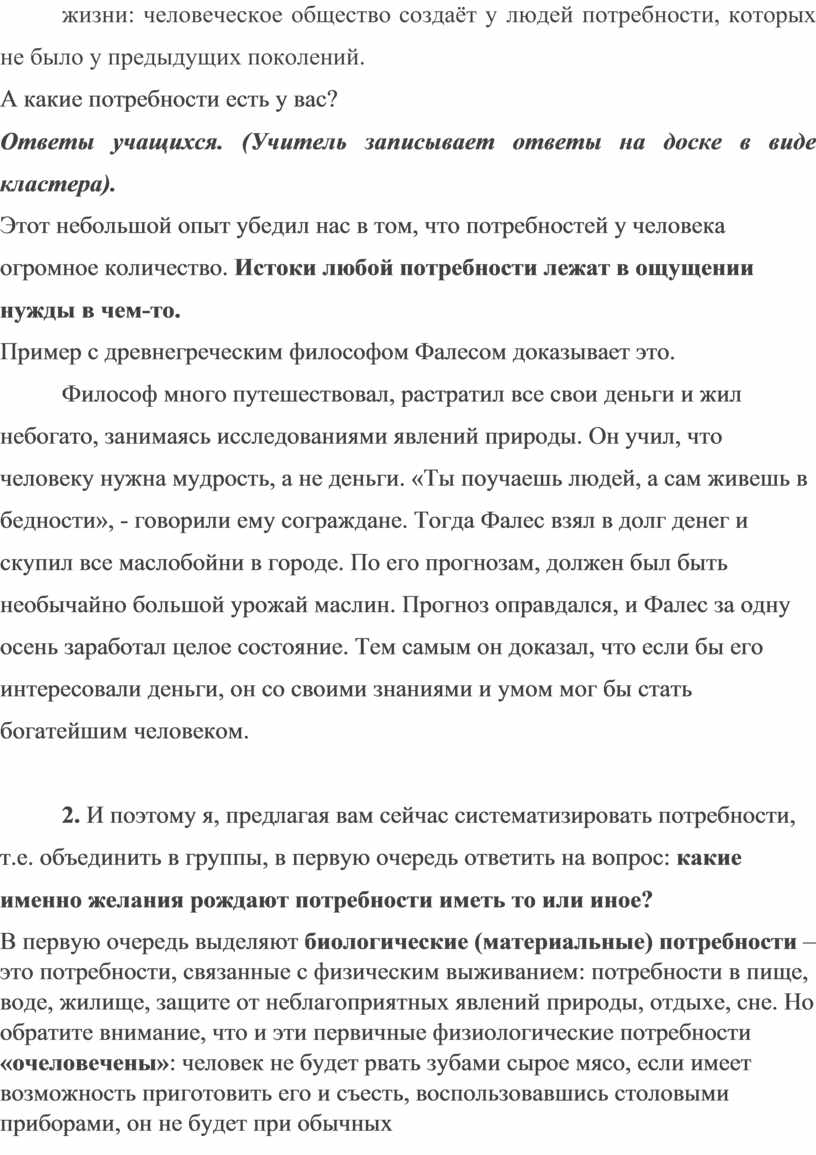 Разработка урока обществознания по теме "Потребности человека".