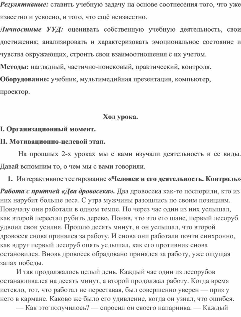 1. Интерактивное тестирование «Человек и его деятельность. Контроль»