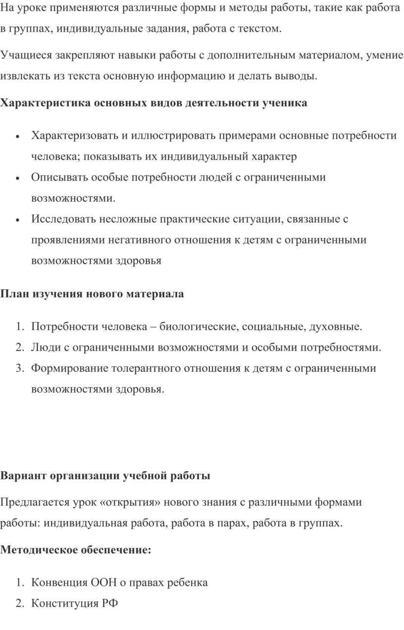 Этот урок входит в раздел «Человек в социальном измерении». Изучение темы предполагает обращение к социальному опыту учащихся. Очень важный аспект именно этого занятия – формирование толерантного отношения к детям с ограниченными возможностями.