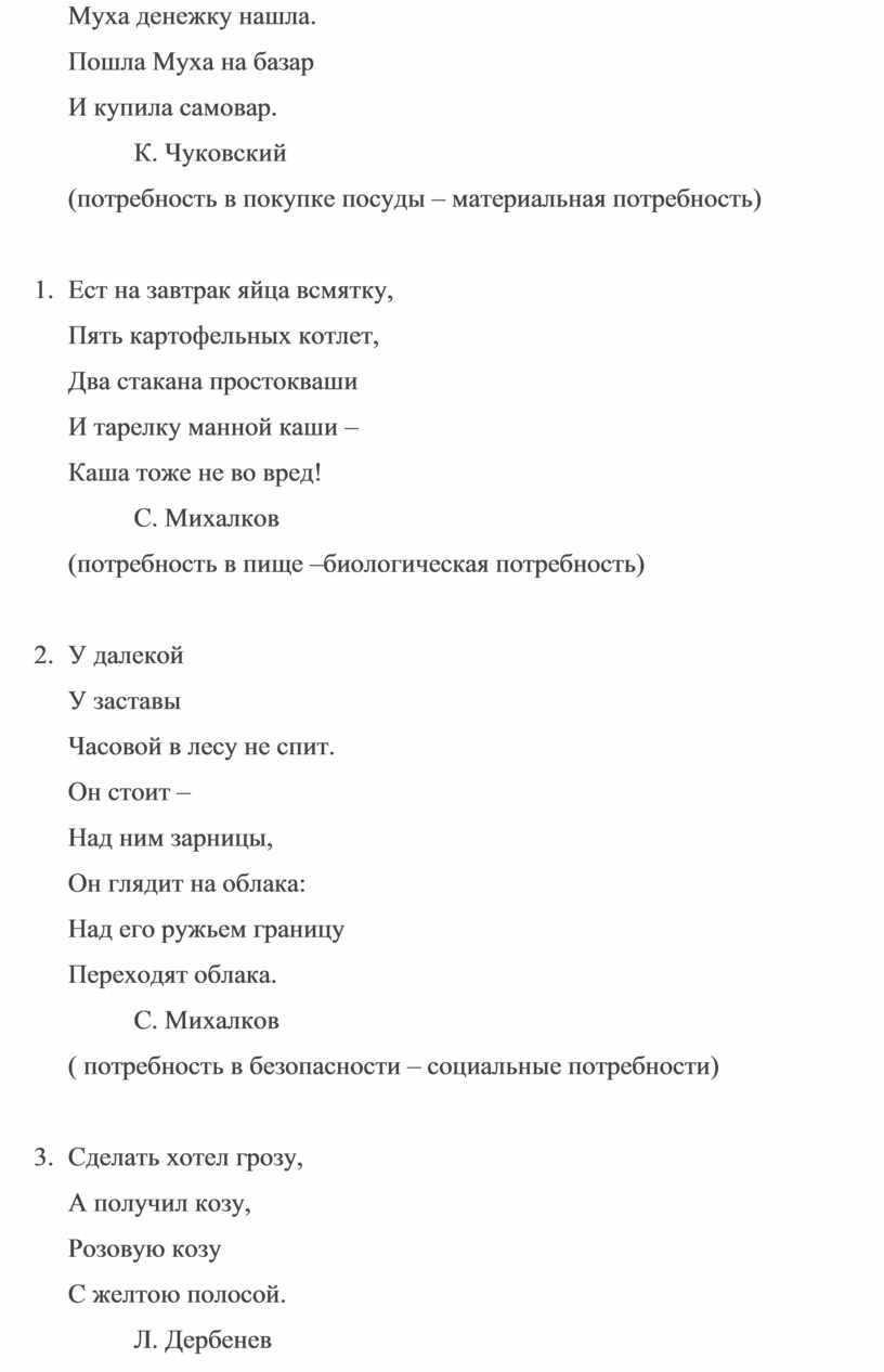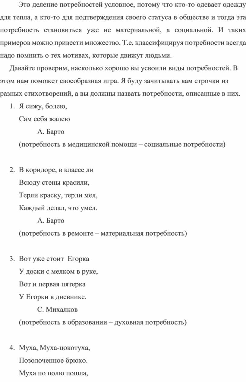 Давайте проверим, насколько хорошо вы усвоили виды потребностей. В этом нам поможет своеобразная игра. Я буду зачитывать вам строчки из разных стихотворений, а вы должны назвать потребности, описанные в них.