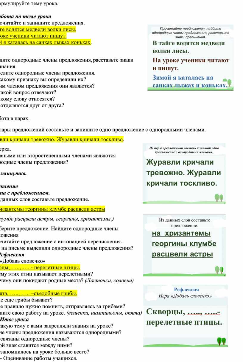- обучающие (направленные на достижение предметных результатов обучения): создать условия для развития у учащихся умений распознавать однородные члены в предложениях; определять какими членами в предложении они являются; соблюдать интонацию перечисления при однородных членах;