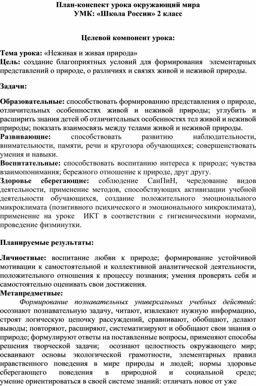План-конспект урока окружающий мира