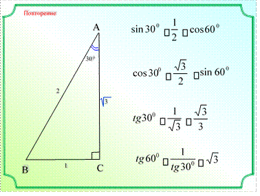 Sin 0 = 0, sin 90 = 1, sin 180 = 0, cos 0 = 1, cos 90 = 0, cos 180 = - 1. (2) Запишите в тетради.