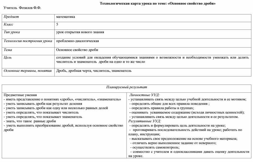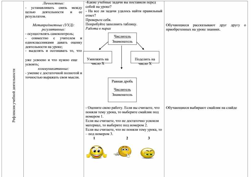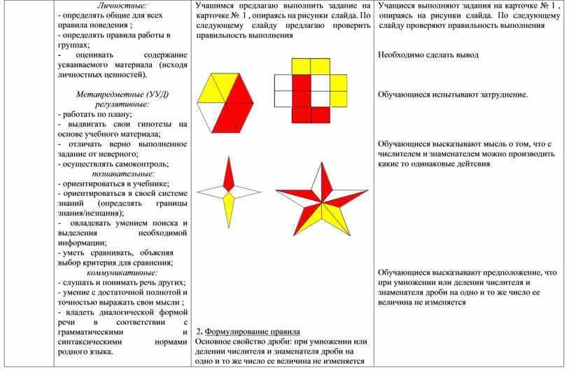 создание условий для овладения обучающимися знаниями о возможности и необходимости умножать или делить числитель и знаменатель дроби на одно и то же число |