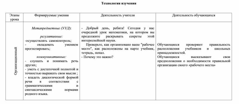 Подготовка учащихся к работе на уроке: выработка на личностно значимом уровне внутренней готовности выполнения нормативных требований учебной деятельности. |
