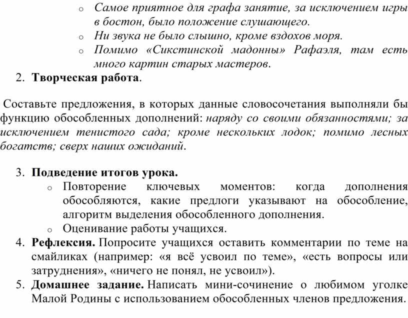 9. Домашнее задание. Написать мини-сочинение о любимом уголке Малой Родины с использованием обособленных членов предложения.
