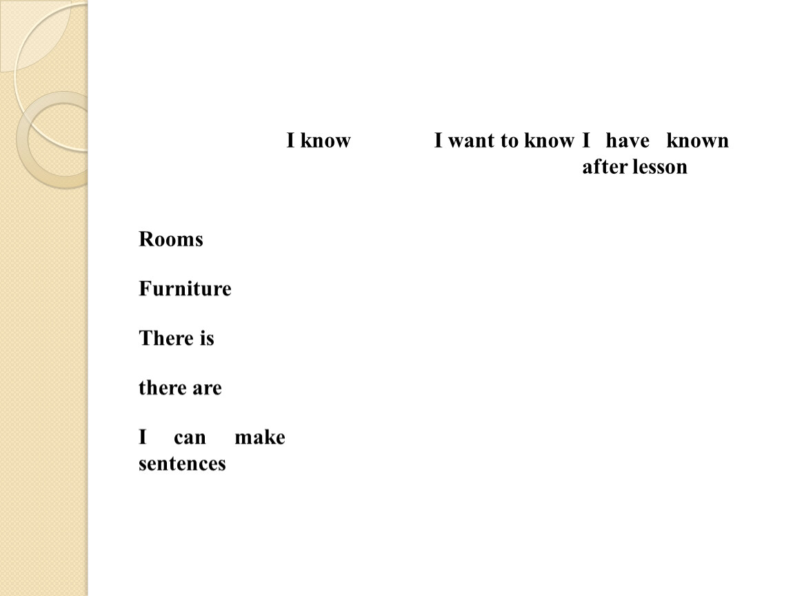 I know | I want to know | I have known after lesson | |
