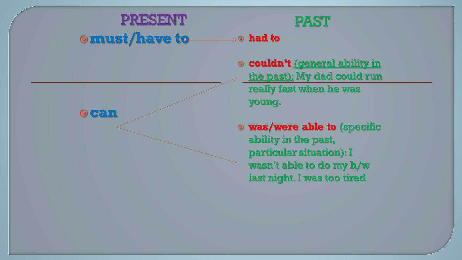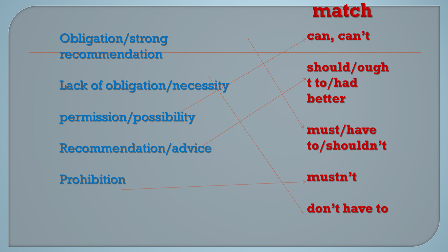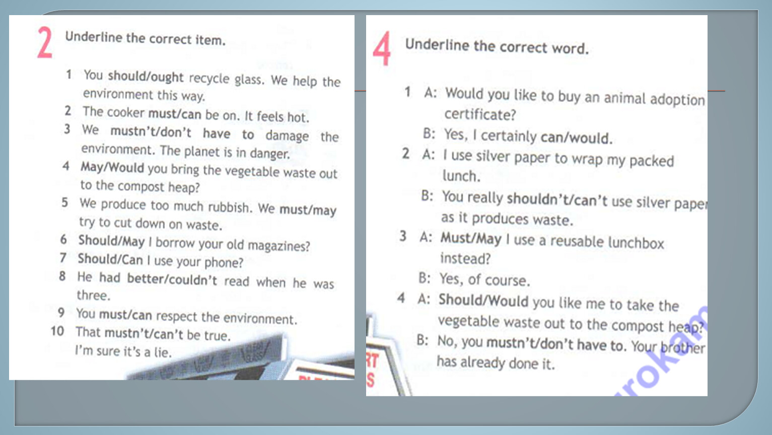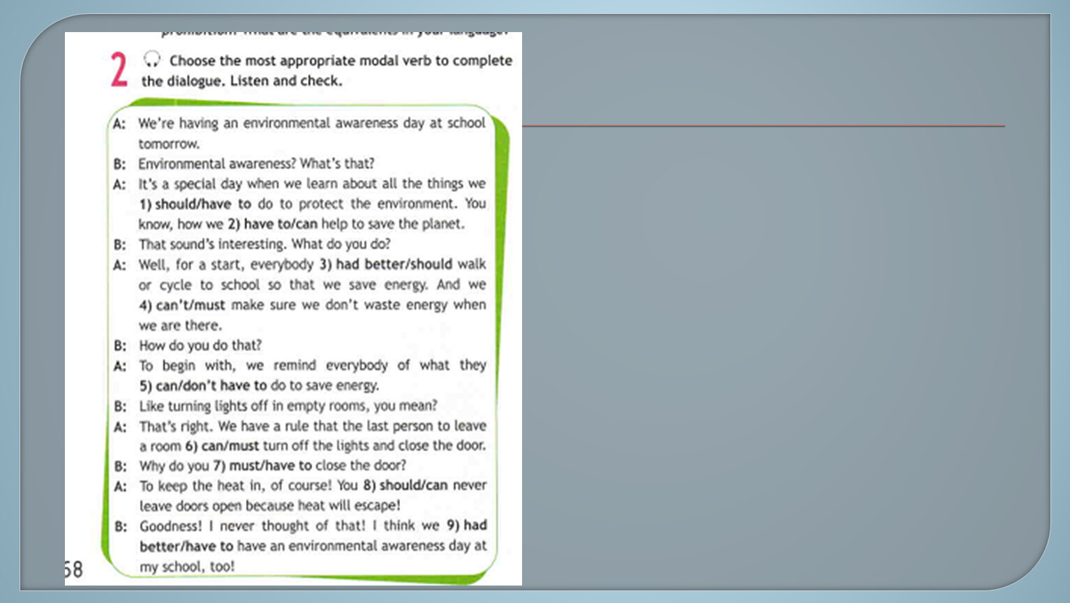 Task #2 Fill in: must(2), mustn’t, can, can’t, could(2), may, might, have to.