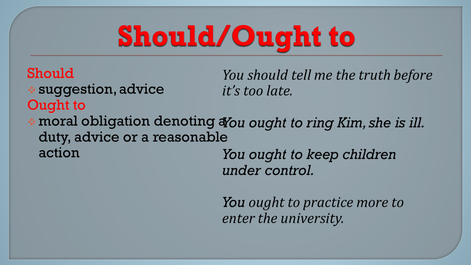 Например: You should call her immediately. — Тебе следует немедленно позвонить ей.