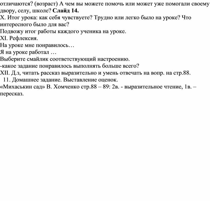 X. Итог урока: как себя чувствуете? Трудно или легко было на уроке? Что интересного было для вас?