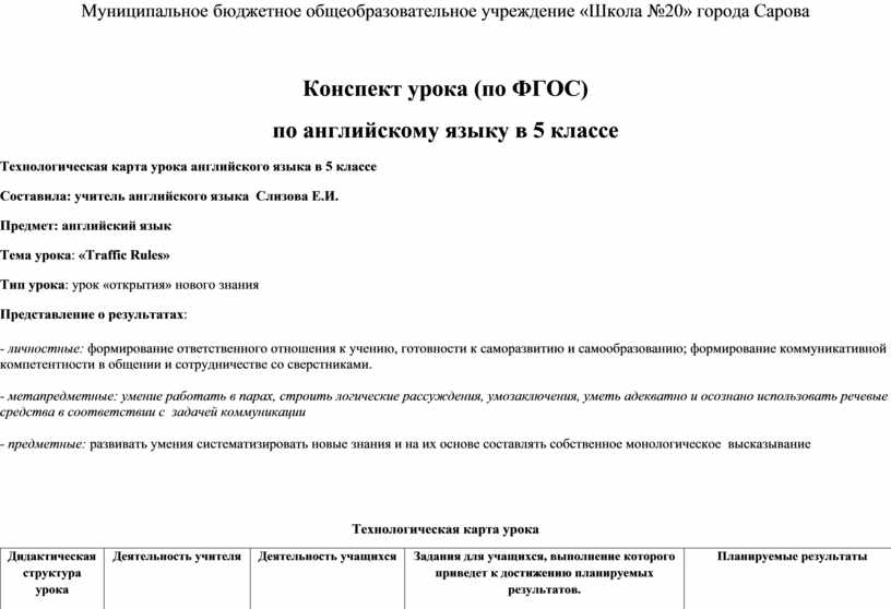Муниципальное бюджетное общеобразовательное учреждение «Школа №20» города Сарова