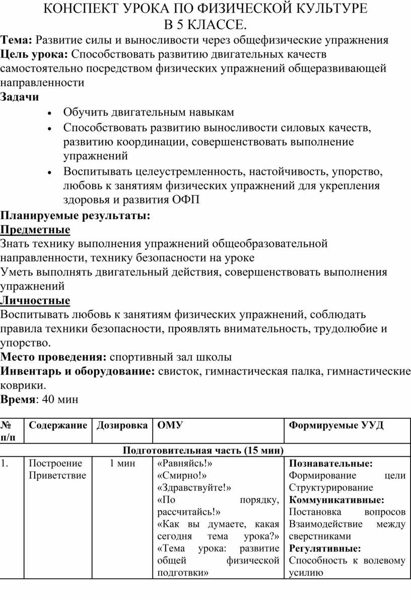 Тема: Развитие силы и выносливости через общефизические упражнения