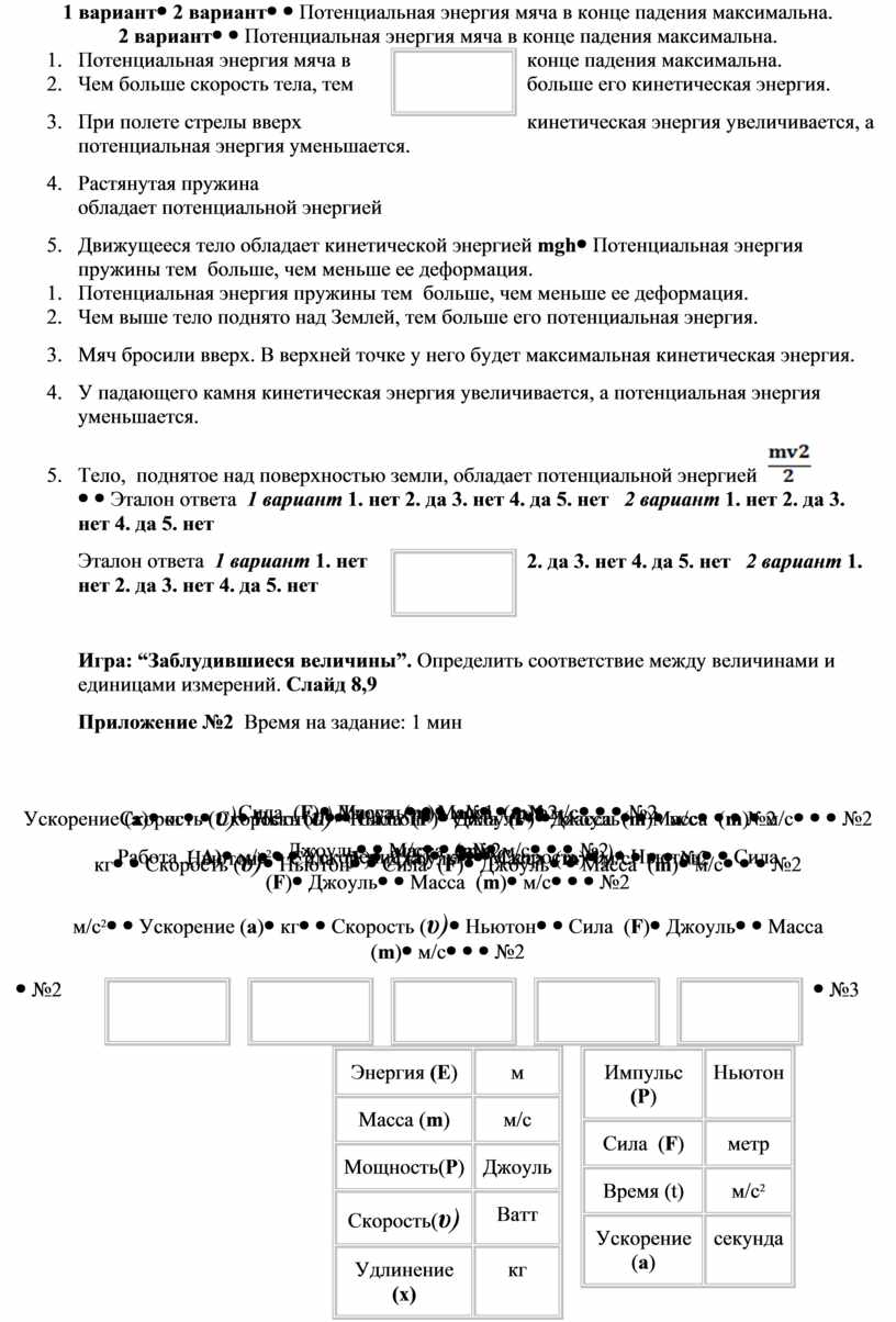 - Игра “Заблудившиеся величины” (Приложение 2)