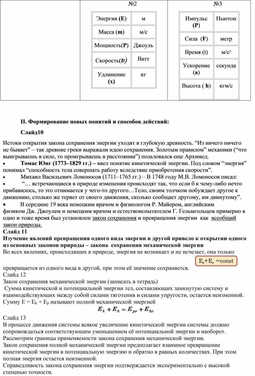 - сформировать знания обучающихся о законе сохранения энергии и превращении одного вида энергии в другой;