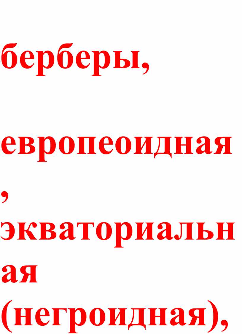 берберы, европеоидная, экваториальная (негроидная), бушмены,