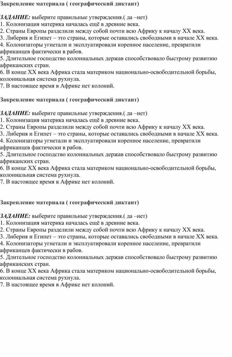 2.Познакомить обучающихся с колониальным прошлым материка и его влиянием на хозяйственное и культурное развитие африканских стран.