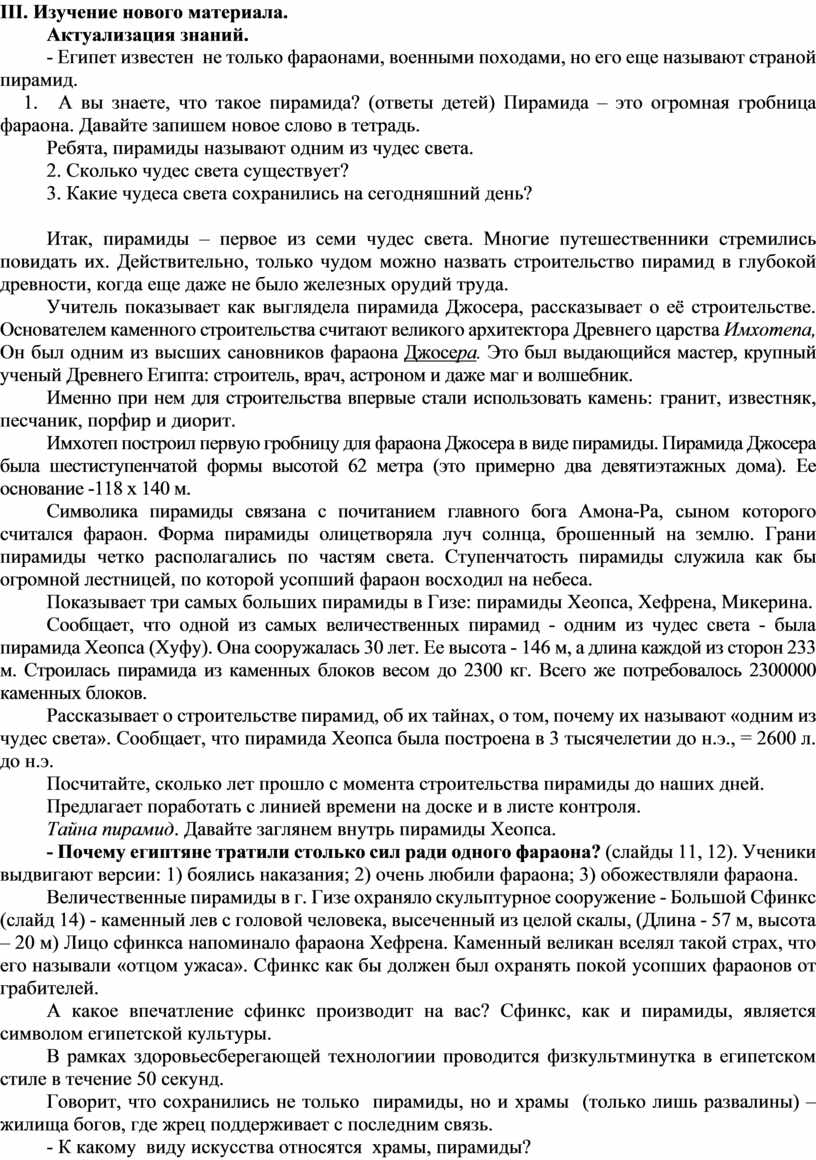 1. А вы знаете, что такое пирамида? (ответы детей) Пирамида – это огромная гробница фараона. Давайте запишем новое слово в тетрадь.